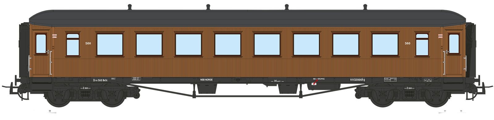 NSB 2 Kl. Personvogn Bo3c 560, Lanterine Tak, Grohe Takventiler